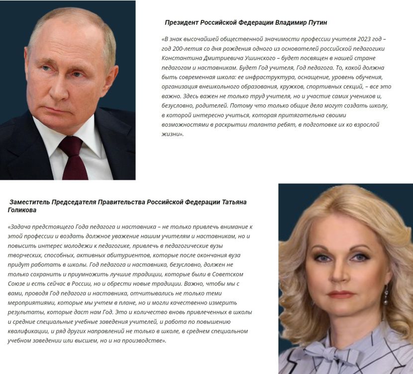 2023 год Указом Президента России Владимира Путина объявлен Годом педагога и наставника.