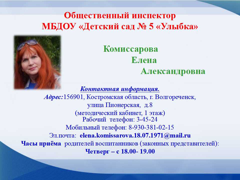 Положение об общественном инспекторе по охране прав детства в МБДОУ "Детский сад № 5 "Улыбка".